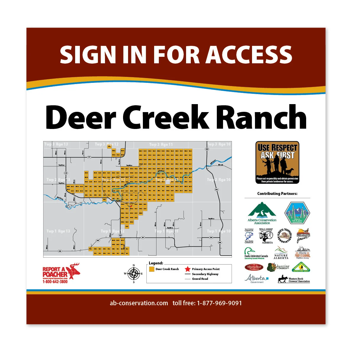 Signs designed to support positive relations between private landowners and the general public. Each sign includes a custom map that show the sections of land that private landowners are granting for public access.