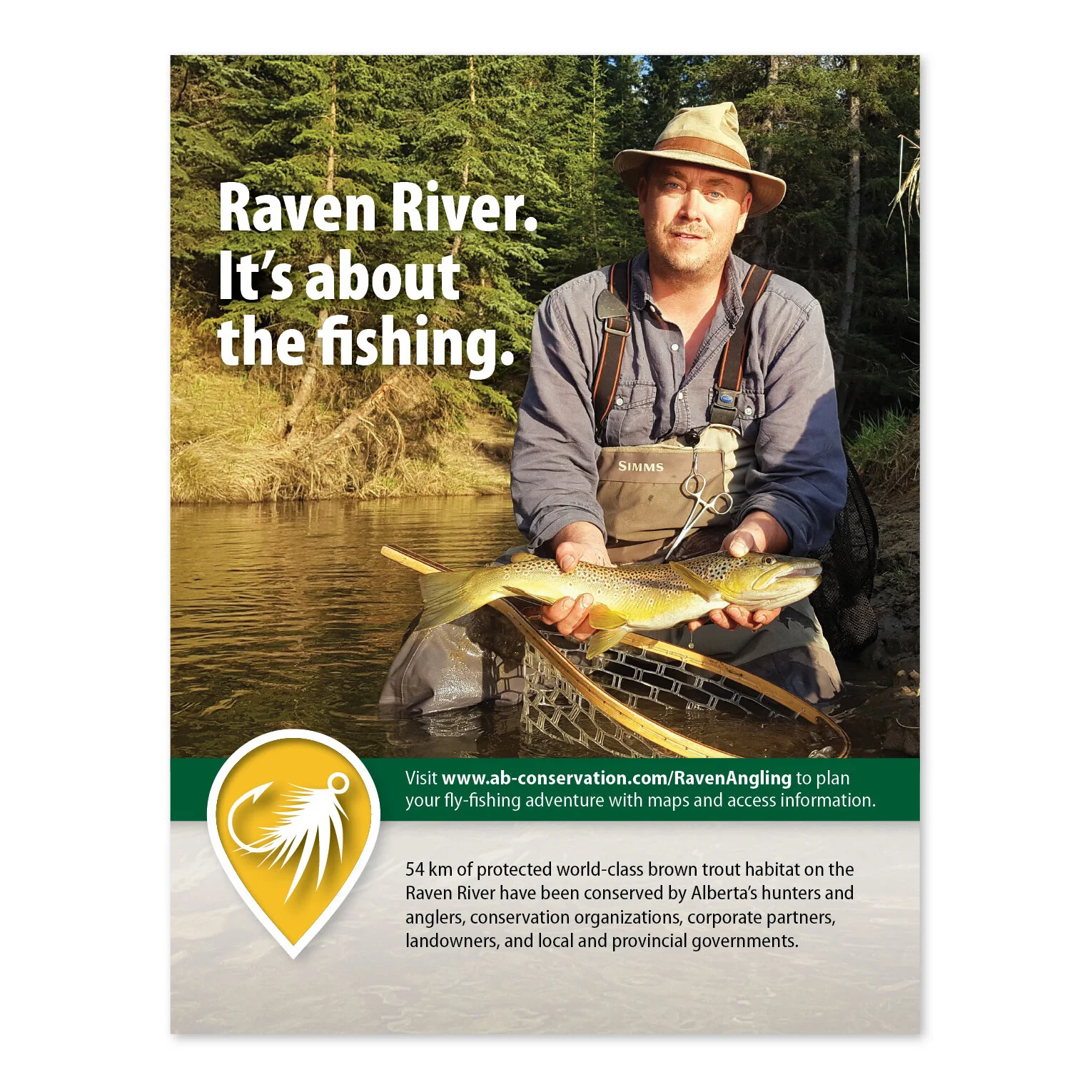 Ad designed to create awareness of the new Raven River Angling online resource which allows the general public to view and access private land surrounding the Raven river for fishing and recreation.